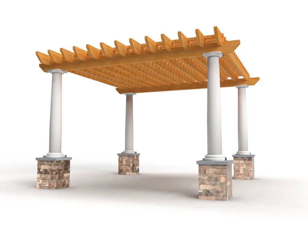 The Tuscan-Style pergola has a traditional flat-topped canopy, accented with 10” round tapered columns that add a European flair to your backyard. The Tuscan pergola, defines your outdoor area leaving plenty of room for dining tables & chairs, conversation seating groups, and outdoor kitchens. Can either be the main focal point or set to one side for an intimate gathering area. Proportional and flowing design creates a room-like feel with distinct layers between elements.